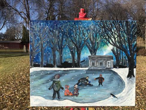 Painter’s Notes — 2025‑11‑11 New Year Art Project, 2020–2025. Another painting day before Remembrance Day—a holiday to honour sacrifice in ceremony. Today I added implements of war: tanks on the canvas, skaters on ice before the 11th hour, November 11th. An outdoor winter art show & tell, and Listen—without snow.