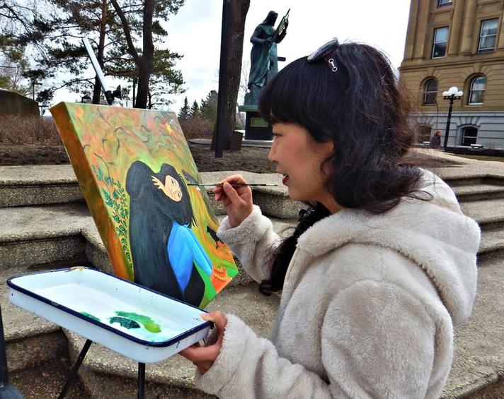Top: Birds of a Feather — White Bird Signature Painting (2025–2026) Features the White Bird Signature Painting, part of the ongoing Birds of a Feather project. It marks the third of my Starbucks Coffee Cup art projects since 2014. As always, I invited guest painters inside Edmonton City Hall to add their own strokes. A renewal in the making—art as a gathering place, a shared breath, a small act of democracy.