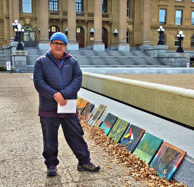 In 2016, the Fire and Rain art project turned my practice of social art painting—news cameras, canvases, and citizenship reporting—toward Alberta’s wildfires and floods. Over the year, I published dozens of news stories on social media and produced 25 paintings between January and November. The work appeared in more than 160 outdoor public art shows on the Alberta Legislature grounds, Edmonton City Hall, and by Old Strathcona McIntyre Park and Farmers’ Market—not to sell, but to spark conversations and exchange stories across Edmonton. My art project weathered three separate art bans, imposed first by the Ministry of Infrastructure, then by the Sergeant at Arms. On New Year’s Eve, as one painting, The Great Escape from Fort McMurray stood beside the outdoor ice rink, under the treaty 6 flag where the project had begun, the City of Edmonton’s events manager threatened police action. Each ban was met with civil, information based actions with art and commitment to free expression. All were eventually lifted—formally, verbally, and with a an apology from the City of Edmonton in 2017—during my Not A Bystander to Anger, Violence, and Bullying art project. My 2016, Fire and Rain art project, taught me everything I needed to know about Edmonton’s relationship with public expression: the crowds were welcome, the politics were welcome, the protests were welcome — but the artist, standing alone with a canvas and a story, was treated then as the real disruption. Today, both the Alberta Government and the City of Edmonton welcome my work inside City Hall adjacent the ice rick where my Fire and Rain art project began and ended and inside the Queen Elizabeth II Building beside Violet King Henry Plaza. A civic space named for Canada’s first Black female lawyer, a University of Alberta graduate whose legacy reminds us that public institutions can evolve, and sometimes push the people they enact with laws and Govern over to the outside margins of society.
